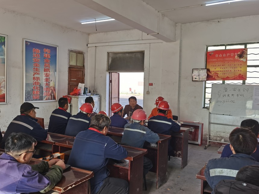安全生产分管领导楚广兴利用班前会将东辰集团安全会议精神传达到一线