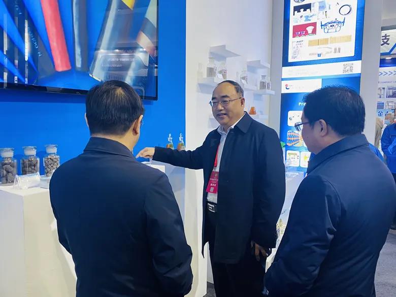 李懋书记一行参观了展馆。在东辰集团展台前,他仔细询问布展参展相关情况,查看各单位参展的工业产品,与工作人员进行亲切交谈,叮嘱大家要通过此次展会宣传好、展示好东辰的品牌形象,让更多的企业了解东辰集团、关注东辰集团。在与参展的基层单位负责人交谈中指出,当前东辰集团正处于高质量转型发展关键时期,创新发展不仅是集团转型发展的需要,更是符合市场日益激烈竞争的需求。我们要牵住创新这个“牛鼻子”,在产品技术、工艺、质量上寻求突破,拿出更多“硬核”产品,树立企业品牌形象,为实现市场开发提供支持。他强调,要利用展会平台,寻求合作机遇,加强交流与合作,了解掌握煤炭领域工业产品发展方向,从而制定有效的市场营销策略,在市场发展中争取主动。并利用好网络等重要平台,拓宽信息渠道,推动外部市场开发。