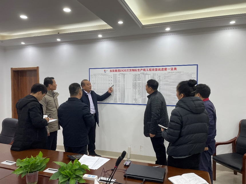 自生产线设计、建设以来,新材料领导班子高度重视,多次组织相关单位进行技术研讨,充分统筹、分配各施工单位的建设工作。通过“攻坚战”挂图作战的形式,力求解决施工工期紧张、施工条件复杂等问题,全力保障生产线建设按照规划节点推进。
