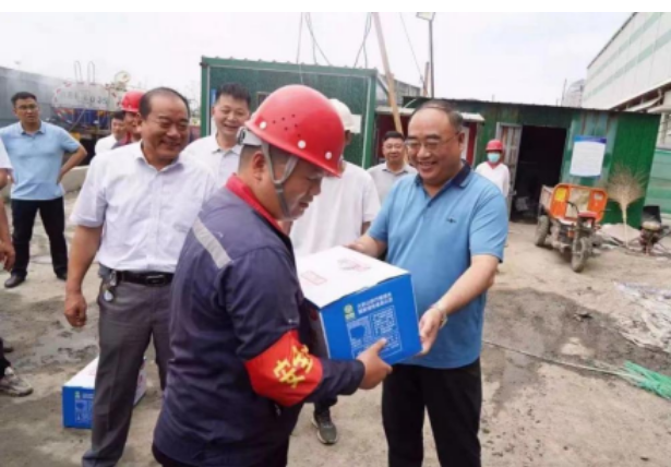 慰问现场,集团公司领导为职工发放了矿泉水、绿豆汤、西瓜等清凉慰问品,对大家为集团公司的发展做出的贡献表示肯定,并叮嘱一定要注意高温期间的劳动保护和防暑降温工作,确保安全生产。